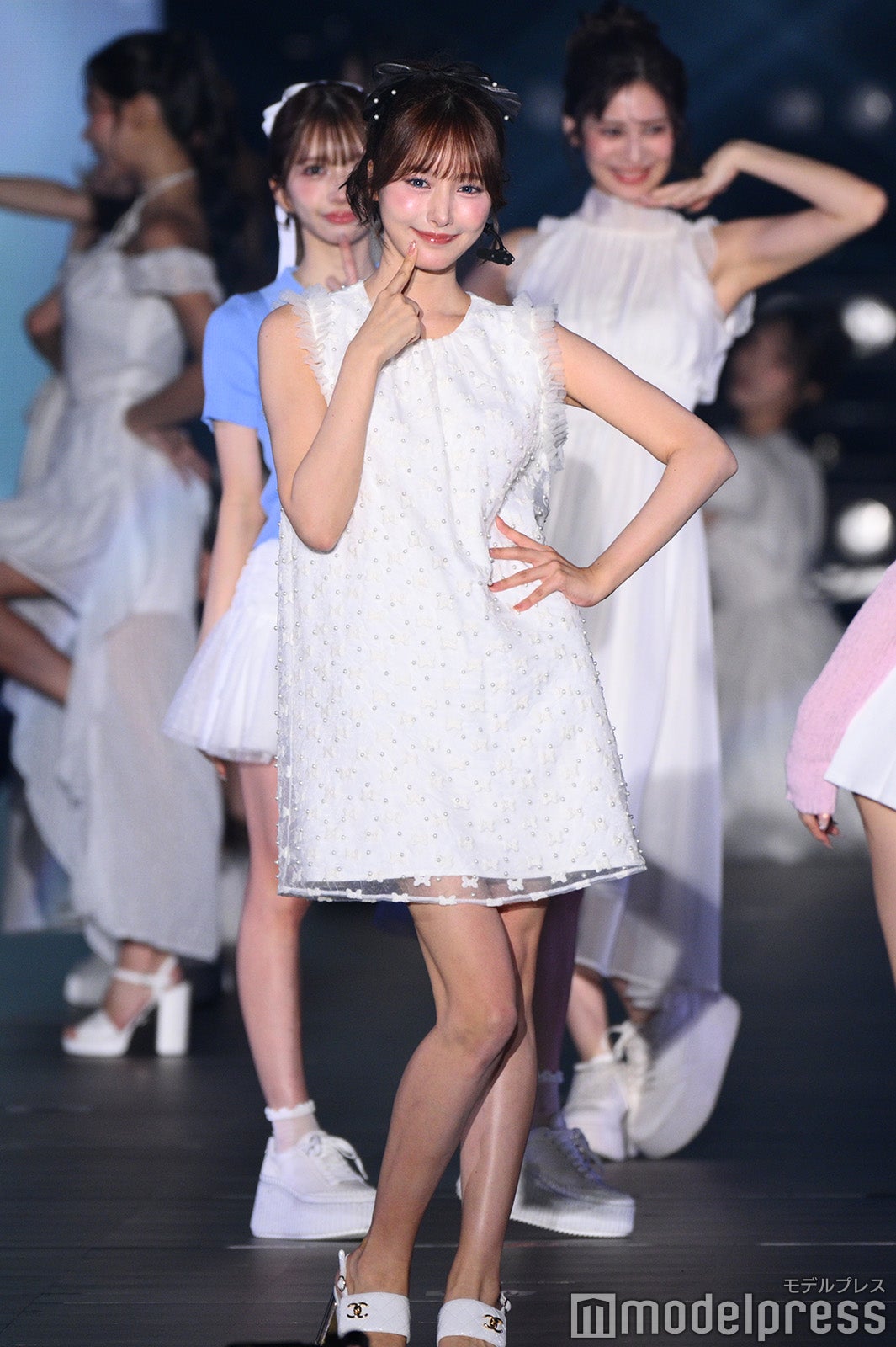 さらにABEMAで配信中のバラエティ番組『CHANCE & CHANGE(チャンスアンドチェンジ)』(隔週水曜日23時~)によるファッションステージでは、自身が手掛けるブランド「La Vie」を着こなし、ウエスト部分のフリルがポイントとなったロングワンピース姿で登場。シンプルだがメリハリがあり、スタイリッシュなメイクで”大人の可愛さ”を最大限に表現した。ほかにもモデルたちとともにファッションステージにも出演するなど、キャバクラ業界の枠に留まらない存在感を放っていた。